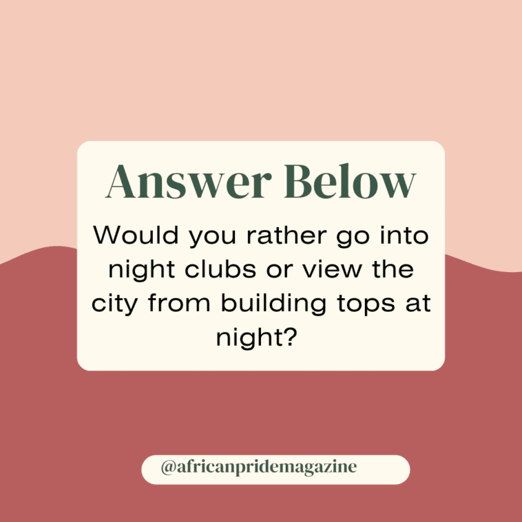 in Poll Which would you rather be doing? by Monsurat June 8, 2023, 2:17 pm 892 Views 0share Facebook Twitter Pinterest LinkedIn Tell us Visit www.africanpridemagazine.com for more Add to CollectionReport #Africa#Africanpride#Africanpridemagazine#AfricanPridemagazinefan#Africanprideradio#AfricanPrideTV#cruise#explore#explorepage#fun#funlovers#global#instadaily#instagram#instagrampoll#instalike#Instapoll#instashare#poll#pollsofinstagram#weekend#yyc#yycnow Leave a ReplyCancel replyYour email address will not be published. Required fields are marked *Comment * Name * Email * Website Save my name, email, and website in this browser for the next time I comment. Post Comment Δ Reply with GIF GIPHY App Key not set. Please check settings 0share Facebook Twitter Pinterest LinkedIn See more Previous article Everything You Should Know About the New Apple Vision Pro Next article Family of Black Mother Fatally Shot Dead by Neighbor Speaks Out What do you think? 0 Points Upvote Downvote Browse and manage your votes from your Member Profile Page Written by Monsurat